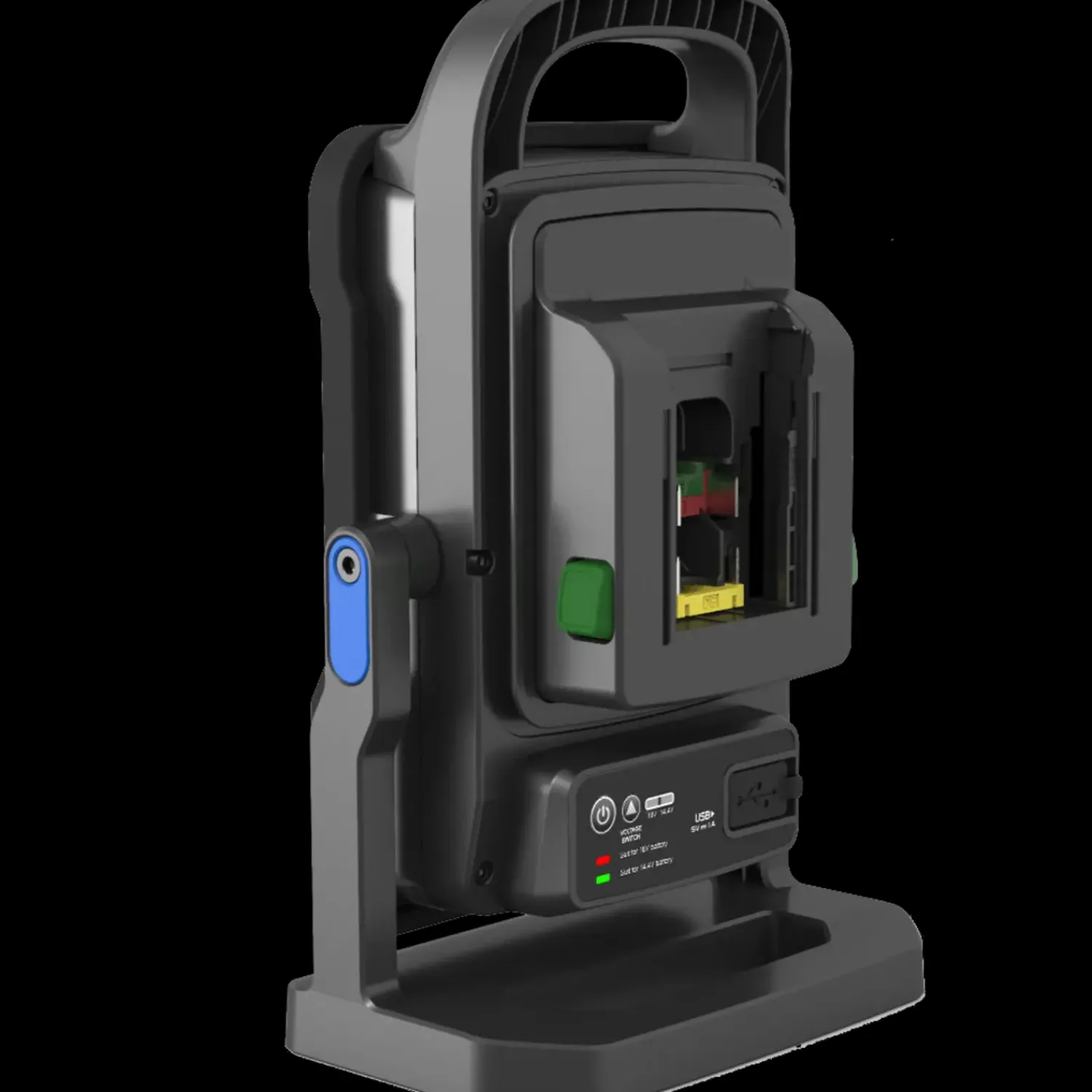 - Lampen er kompatibel med elværktøjs-batterier på 14,4 & 18V fra Dewalt, Milwaukee og Metabo.