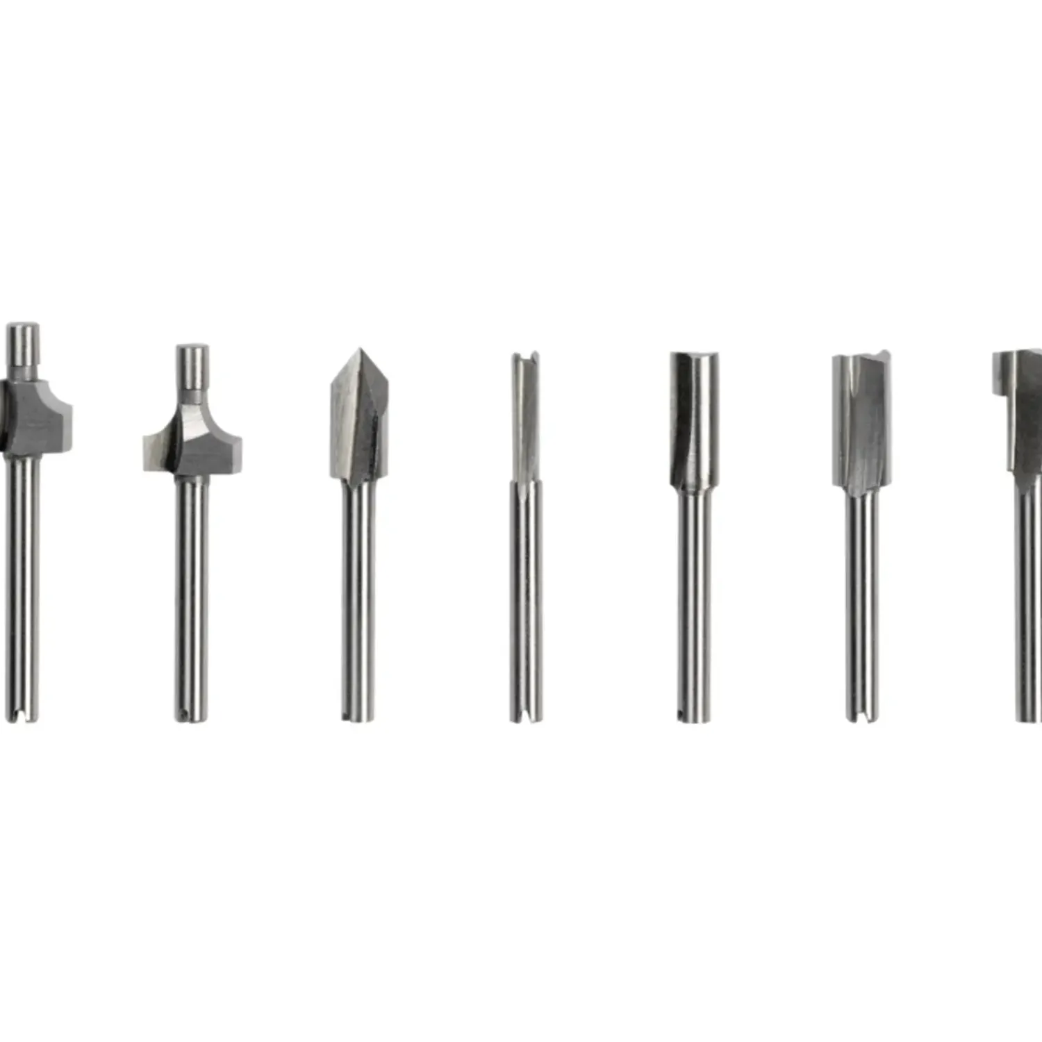 Dremel universal overfræser sæt indeholder alle Dremels 7 fræserboringtilbehør i høj kvalitet.