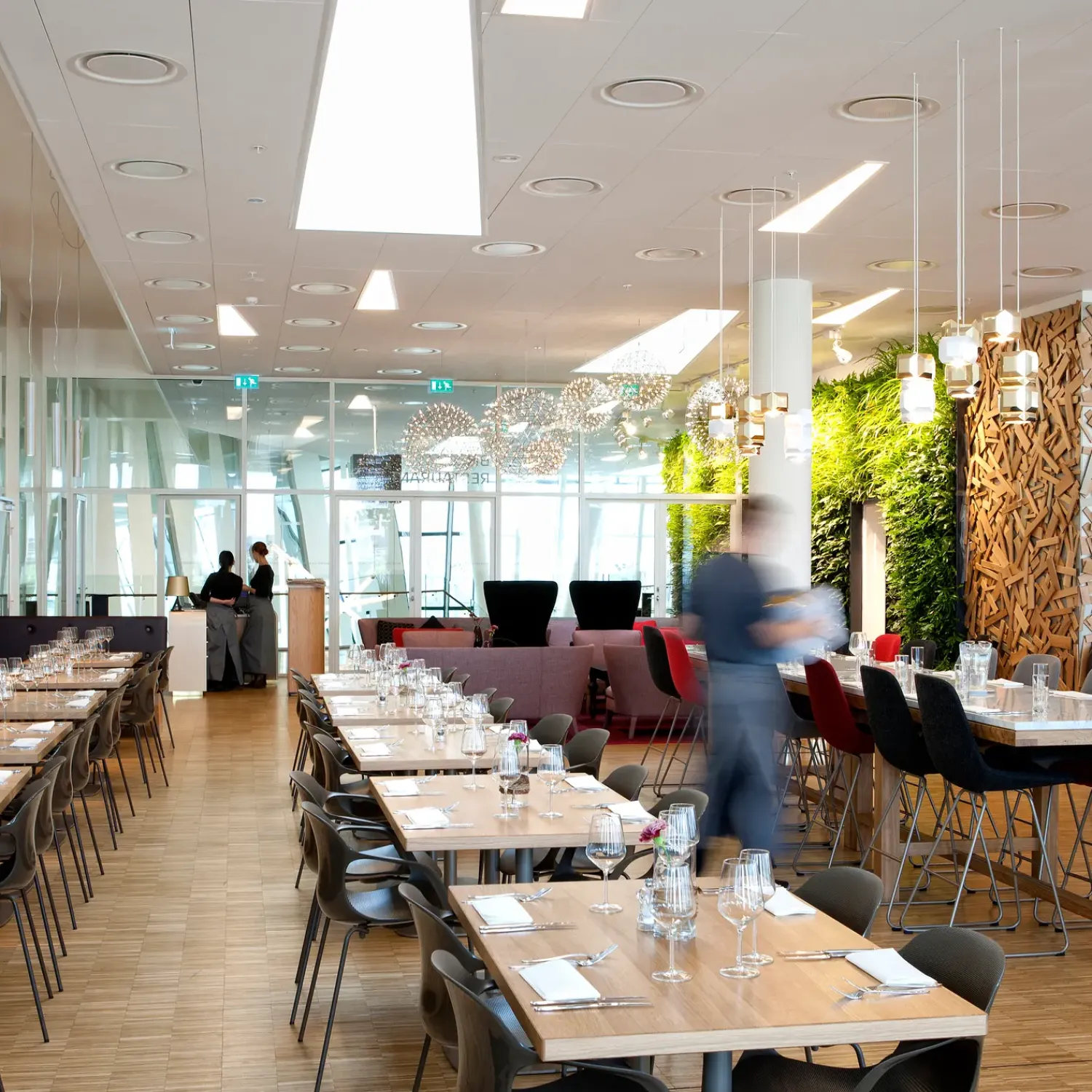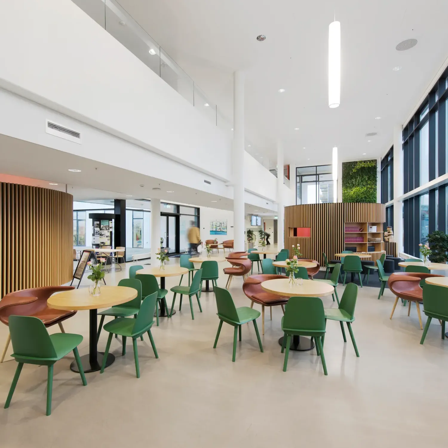 Rockfon Sonar har en klassisk, hvidmalet overflade med mikrostruktur og glat fleece overflade. Her får du fuld designfrihed takket være de mange modulstørrelser og kantdetaljer. Den høje lydabsorption og lysrefleksion giver et lyst og komfortabelt indemiljø.