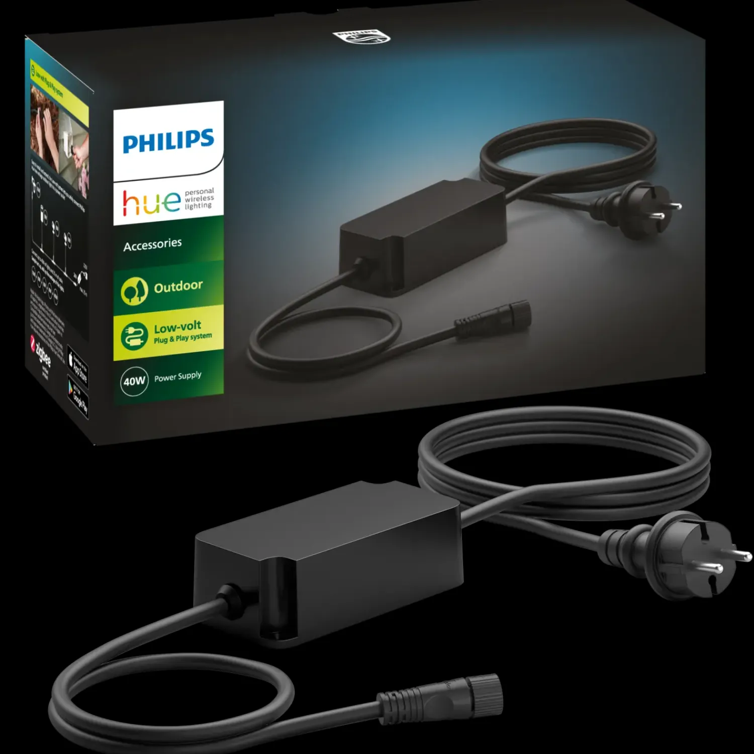 Til dig, der overvejer at ændre placeringen af dine Philips Hue lav volts udendørslamper, og som derfor har brug at få strøm fra en ny strømforsyning. Med 40W har du mulighed for at tilslutte op til fem lav volts lamper som f.eks. Hue Lily og Hue Calla. Separat udendørs strømforsyning til dig, der overvejer at ændre placeringen af dine Philips Hue lav volts udendørslamper, og som derfor har brug at få strøm fra en ny strømforsyning. Med 40W har du mulighed for at tilslutte op til fem lav volts lamper som f.eks. Hue Lily og Hue Calla. Oplys mørke stier, skab højdepunkter i dit landskab eller skab en unik stemning på terrassen. Du kan gøre det selv ved hjælp Hue spots eller piedestaler. Produkterne er baseret på lav volt, er sikre at bruge og nemme at installere. Det er ikke længere svært at installere udendørsbelysning: Du kan skabe og udvide som du vil.
