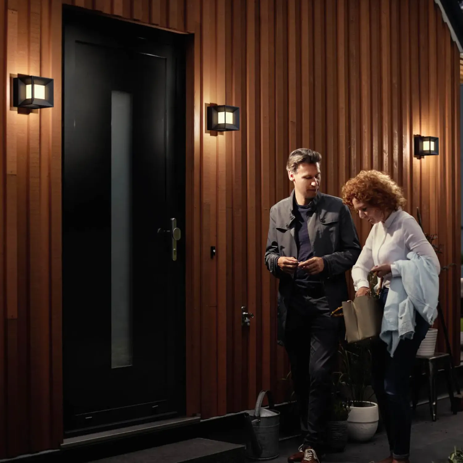 Den sorte Parterre udendørs væglampe er ideel til dig, der søger en lampe, der skiller sig ud og hvor fokus på design og funktionalitet går hånd i hånd. Denne Philips væglampe kan med fordel anvendes stort set alle udendørssteder, som eksempelvis ved hoveddøren og rundt på facaden. Fremstillet i trykstøbt aluminium og med LED får du en energivenlig udendørs væglampe. Den flotte lyskube giver et flot, kraftigt lys på væggen, hvor to effektfulde stråler sender lys ud i alle retninger.
