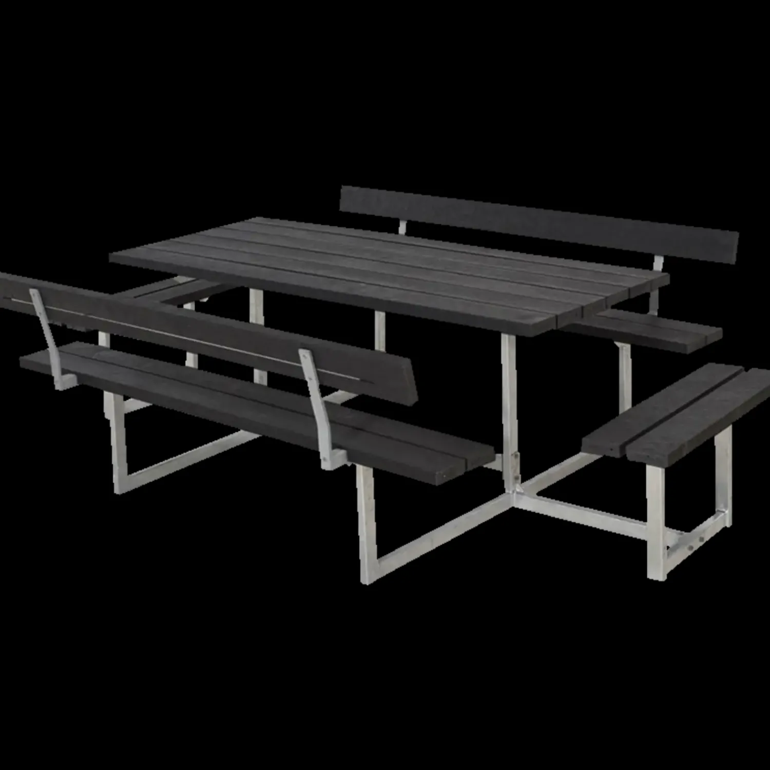 PLUS Basic Bord/Bænkesæt m/2 ryglæn og 2 påbygninger 260 cm RePlast Sort