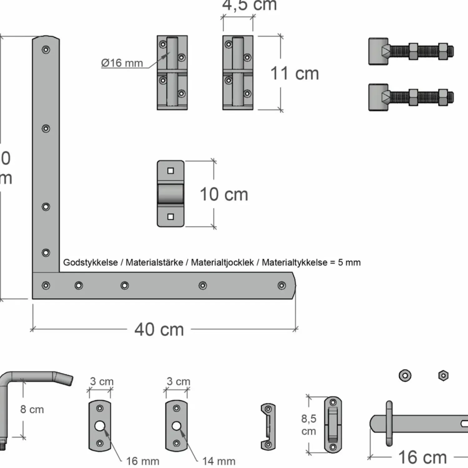 rEnkeltlåge og lågebeslag inkl. bolte/skruer (varenr. 2404-1).