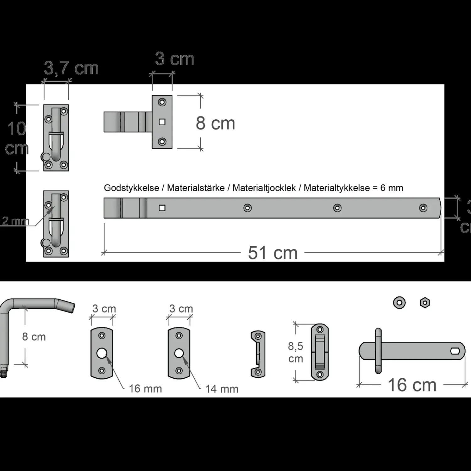 - Vær opmærksom på at, modulet sælges inkl. lågebeslag, bolte og skruer til montering af havelågen.