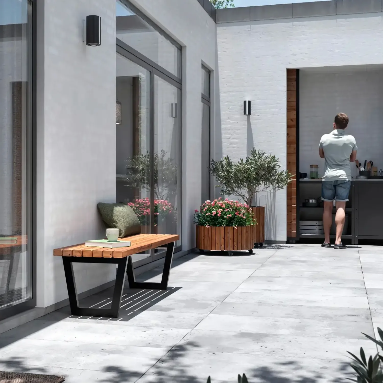Circle plantekasse – Ø55/55 cm – ThermoWood® – 18373-4Elegant og praktisk plantekasse med hjul, som er ideel til både blomster, planter, grøntsager og krydderurter.Det enkle design med lodrette trælister passer perfekt ind i tidens trend og har et naturligt look, som skaber en hyggelig atmosfære.Med Circle plantekasser er det nemt at skabe en hyggelig oase eller en lille køkkenhave på altanen, terrassen eller ved indgangspartiet.Kasserne er ideelle både til en lille altan og en stor terrasse, og de fleste planter, blomster, grøntsager og krydderurter trives fremragende deri.Med Circle plantekasser kan du undgå ømme knæ og passe dine planter i en god arbejdsstilling. Kasserne er samtidig ideelle til ruminddeling og som afskærmning på altanen og terrassen.Lister:19×45 mm.ThermoWood® – varmebehandlet fyrretræ.Leveres færdigmonteret på bånd.Som udgangspunkt kræver ThermoWood® ikke vedligeholdelse med maling eller olie, da træet i sig selv er holdbart.Træet vil dog ganske hurtigt ændre farve til en smuk grålig nuance, når det udsættes for regn, sol og skiftende vejrforhold.Du kan med fordel give det en olie, hvis du gerne vil bevare den varme farve i træet.Stål – top/bund:Galvaniseret og pulverlakeret stål.Sort RAL 9005.Hjul:Ø50 mm – 4 stk. med stop (bremselås).Højde på plantekasse: – med hjul 55 cm.- uden hjul 48 cm.Inkl. rund PE-plantepose (sort).Leveres som “Saml selv”.