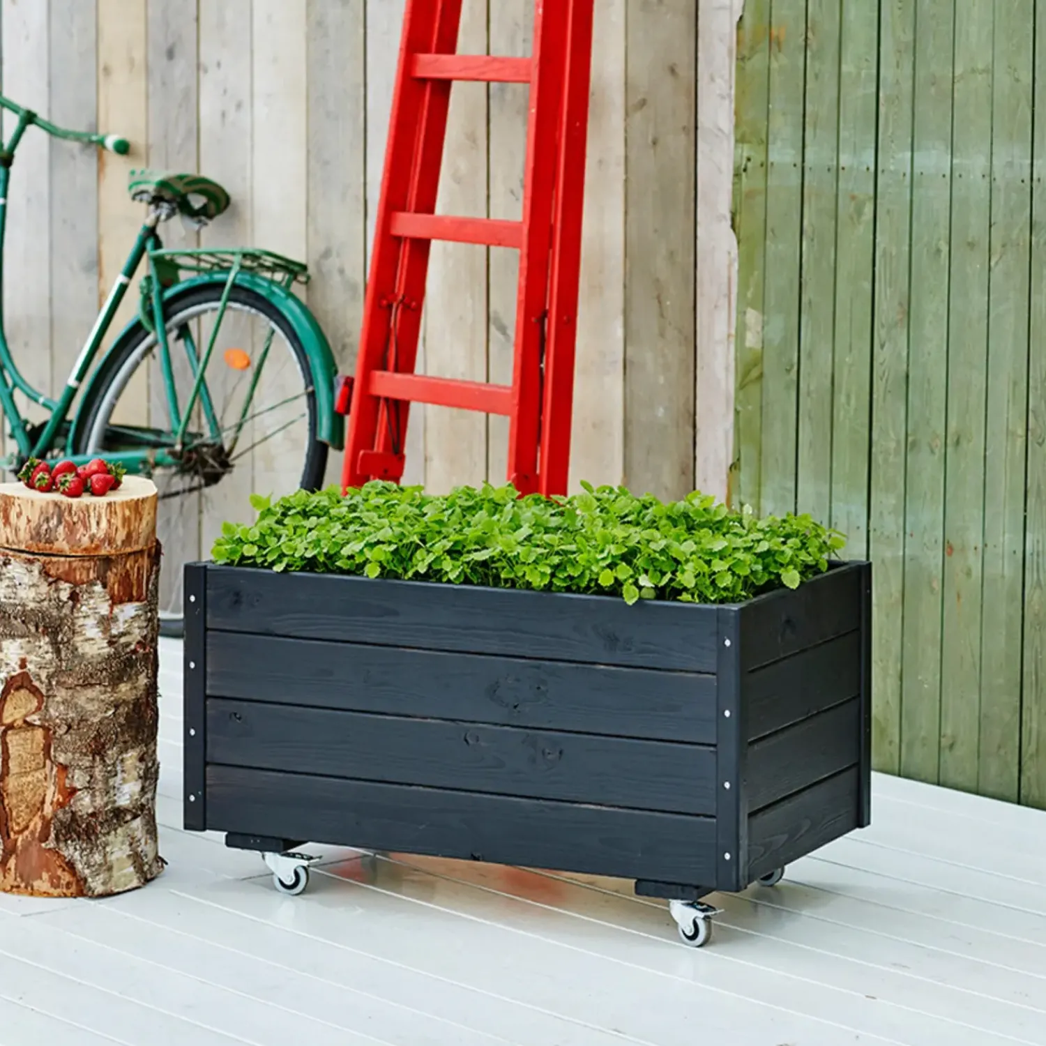 Plantekasse til dine sommerblomster og krydderurter, fremstillet i fyr og gran og grundmalet sort.