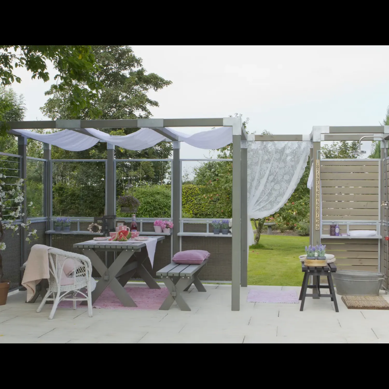 Dobbelt hjørnebeslag i varmgalvaniseret og pulverlakeret stål fra Plus der anvendes til træstolper