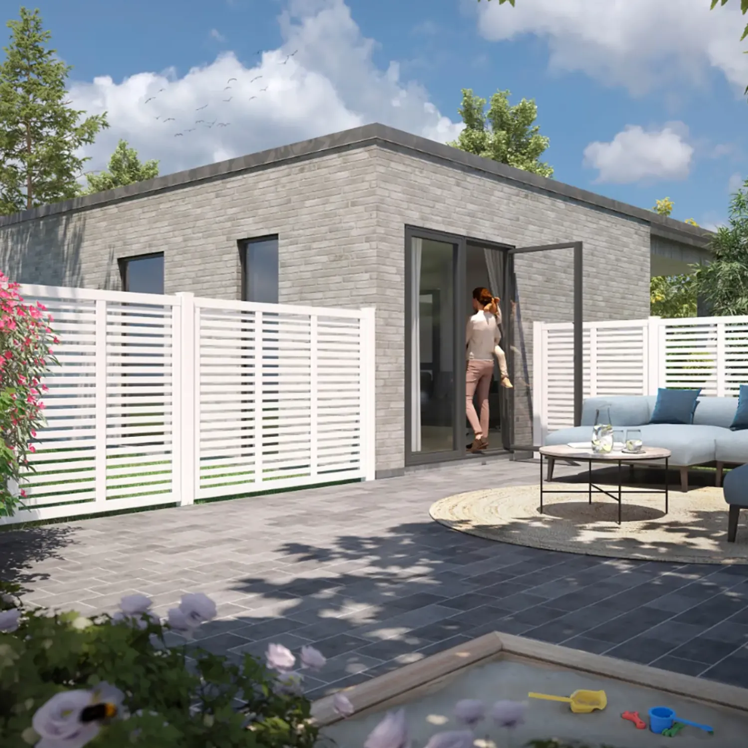 Lad harmonien brede sig i dit uderum med dette smukke listehegn.De smalle lister virker kamuflerende, så indkig begrænses uden at lukke helt. Samtidigt skaber samspillet mellem lodrette og vandrette lister en flot persienneeffekt, der leder tankerne hen på de betagende, japanske foldevægge.Hegnet er helt ens på begge sider og er derfor ideelt som afskærmning, rumdeler eller i et naboskel, hvor hegnet ses fra flere sider.