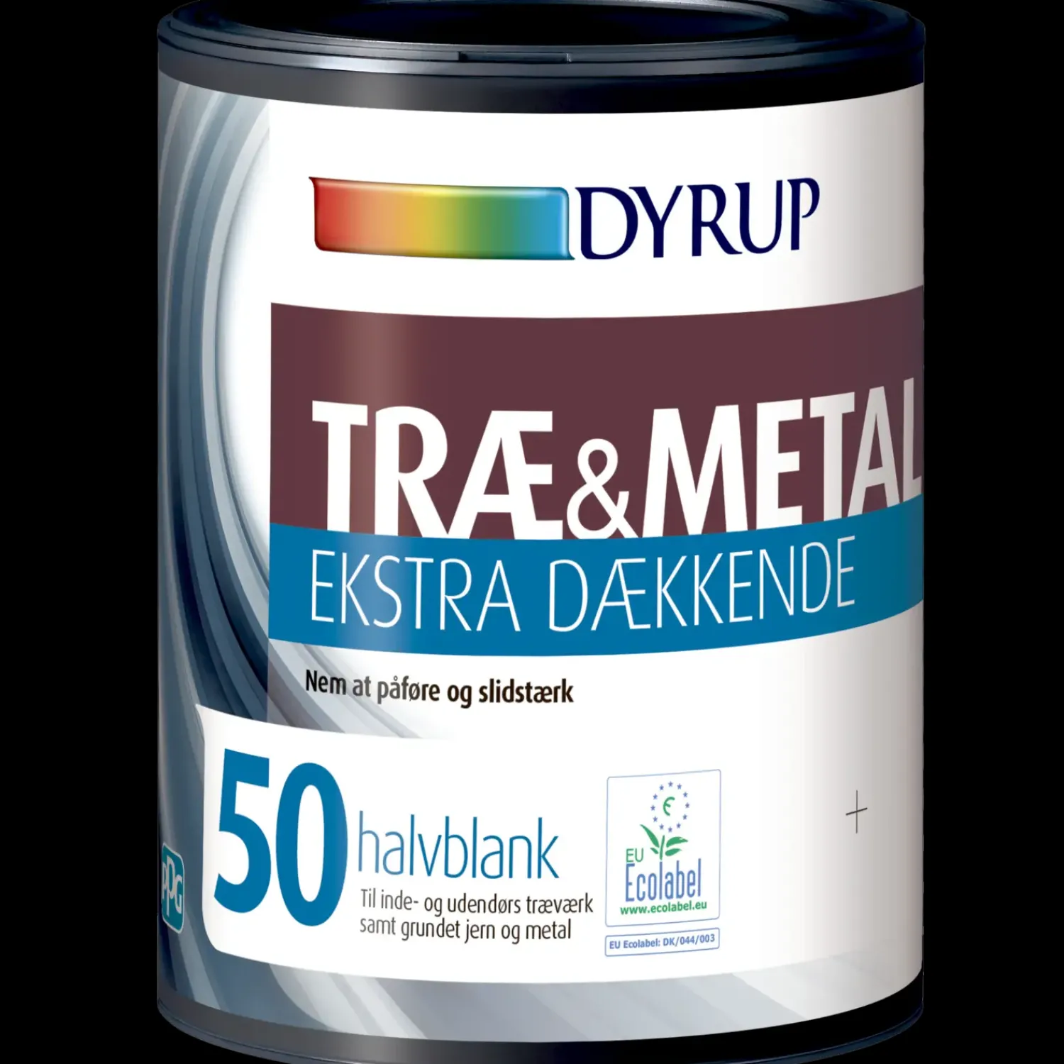 Dyrup Træ og Metal ekstra dækkende 50 er en ekstrem slidstærk og vaskbar maling.