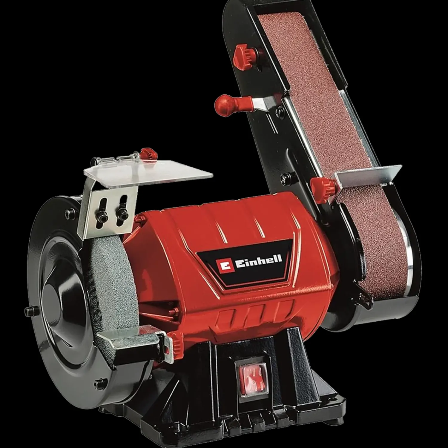Det robuste og forvrængningsfrie design i kombination med de store, justerbare arbejdsstøtter er ideelle til en lang række materialer herunder arbejde på store og brede træstykker. Fire gummifødder absorberer vibrationer for at sikre en sikker ståstilling. Leveres med en grov slibesten og et slibebånd.