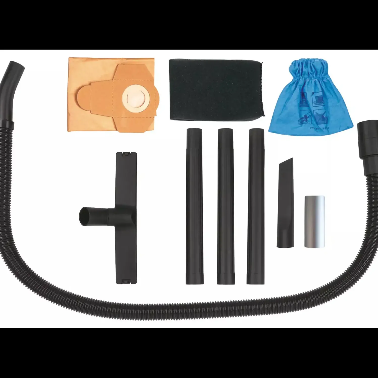 Produktet leveres komplet med en 1,50 meter sugeslange i plast men en diameter på Ø 36mm med høj luft /snavs flow og en 3-delt forlængerrør, gulvmundstykke til tæpper og hårde gulve og sprækkemundstykke og et skumfilter, blå filterpose og en papir støvsugerpose.