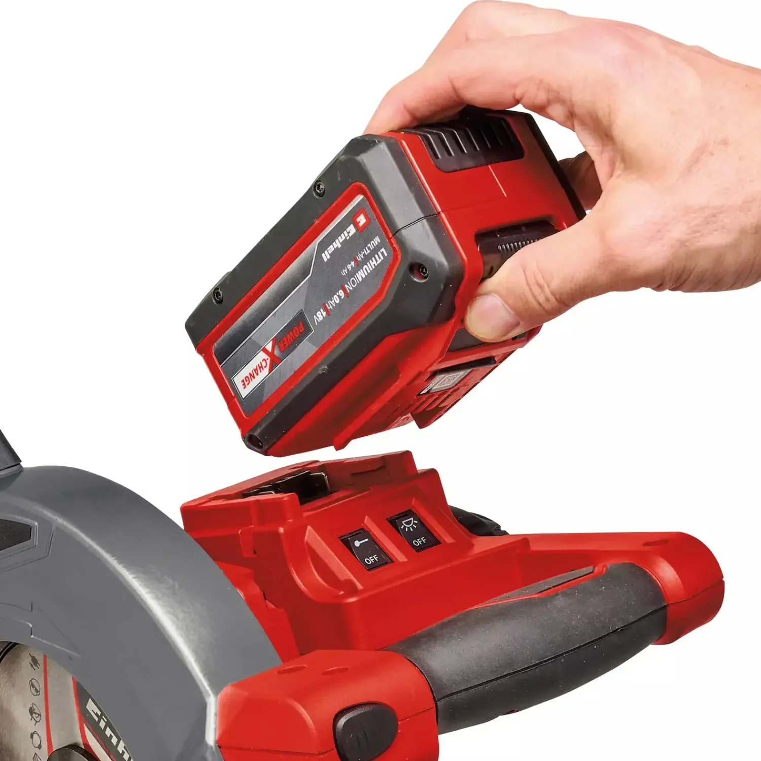 Indgår i Power X-Change familien, hvor batterierne passer til over 300 forskellige maskiner, akku kap-/geringssaven anvender 1 x 18 Volt batteri på 1,5 Ah eller mere. Du får med Power X-Change serien en kontinuerlig trådløs drift takket være udskifteligt og højtydende batteri.