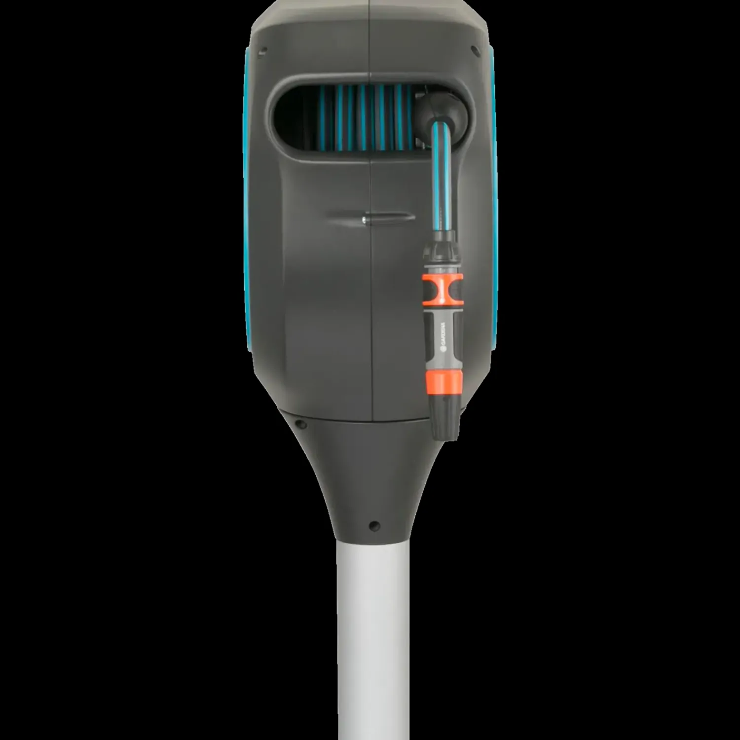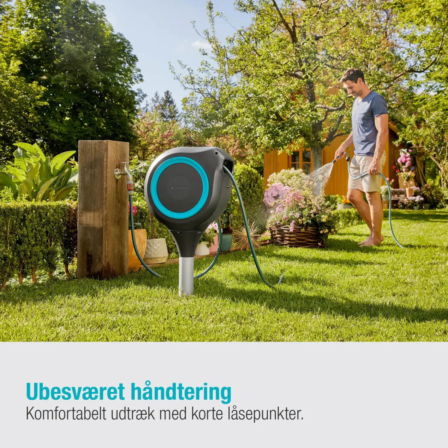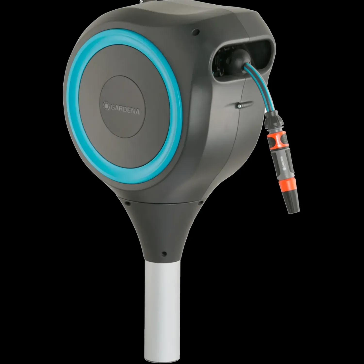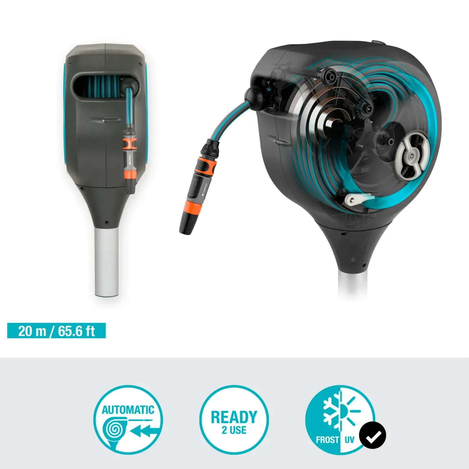 Smart haveslangeboks RollUp M fra Gerdena med plads til 20 meter haveslange. Til boksen medfølger et jordspyd, sådan du let og enkel kan montere boksen i haven.