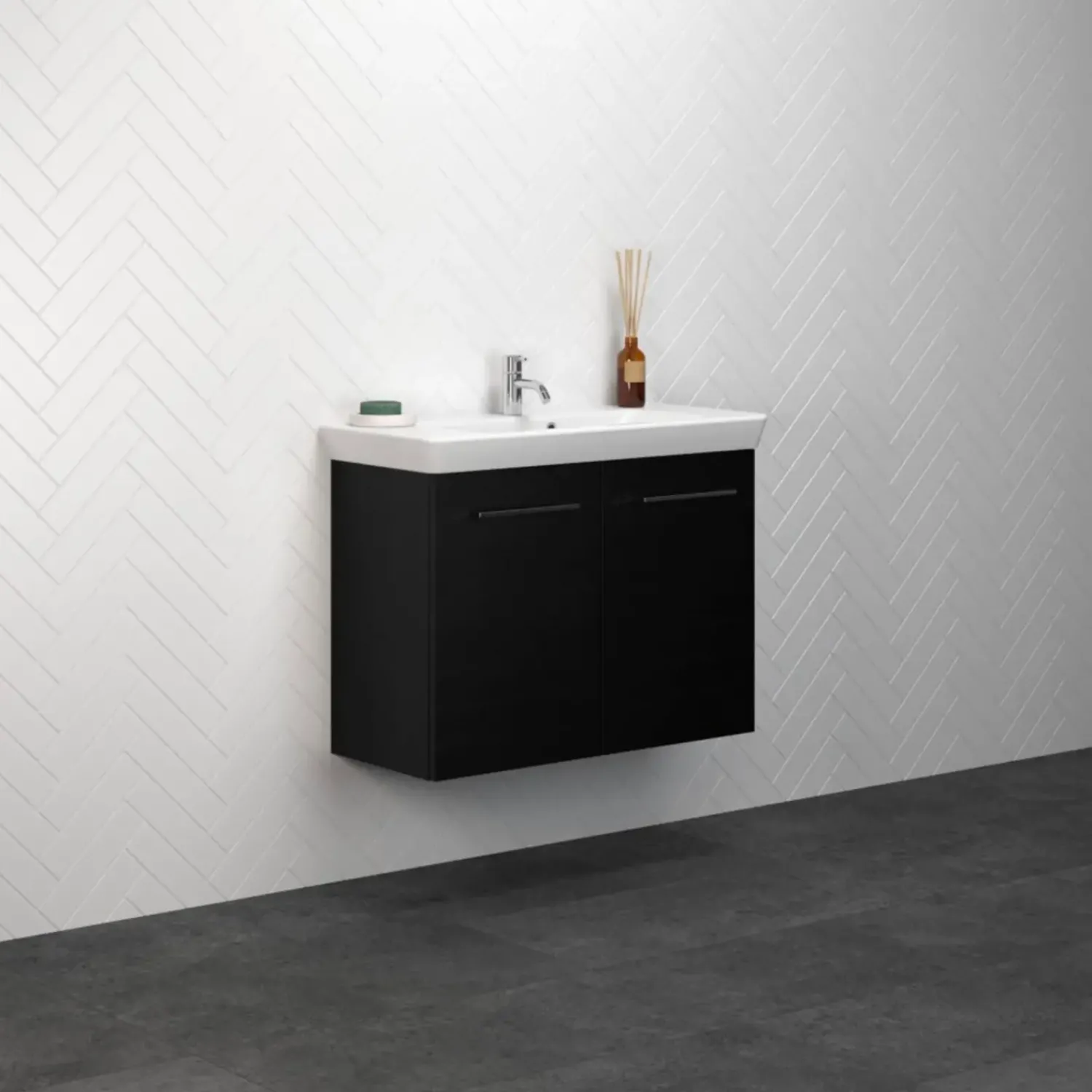 Sale Scanbad Multo vaskeskab m. låger inkl. Lotto vask 85 cm sort