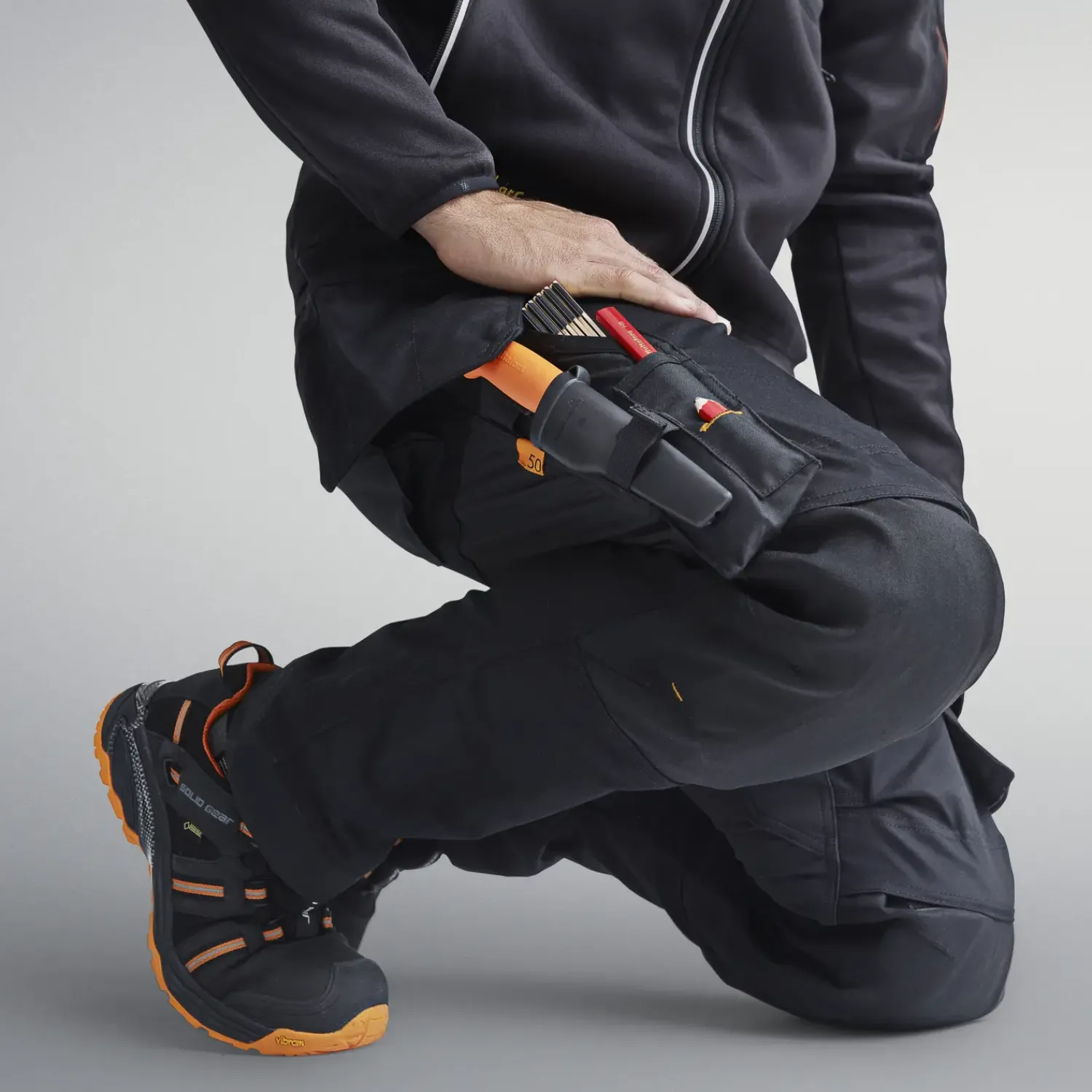 Elastiske og slidstærke arbejdsbukser med hylsterlommer, som er lavet til hverdagsbrug. De slanke ben giver et stilrent look. Multifunktionelle arbejdsbukser i stretchstof. Bukserne har forbøjede ben og 4-vejs stretchpaneler bagpå for at give øget fleksibilitet og bevægelsesfrihed. De CORDURA® forstærkede KneeGuard™ lommer giver ekstra beskyttelse og holdbarhed, mens de forstærkede hylster-, tommestok- og cargolommer giver sikker opbevaring og nem adgang til værktøjet. Slanke ben.
