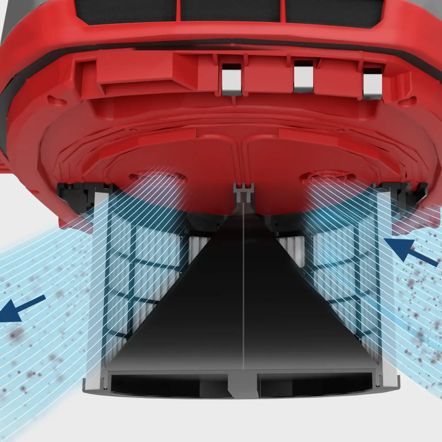 - Optisk måling af sugestyrke, med akustisk alarm ved lavsugestyrke