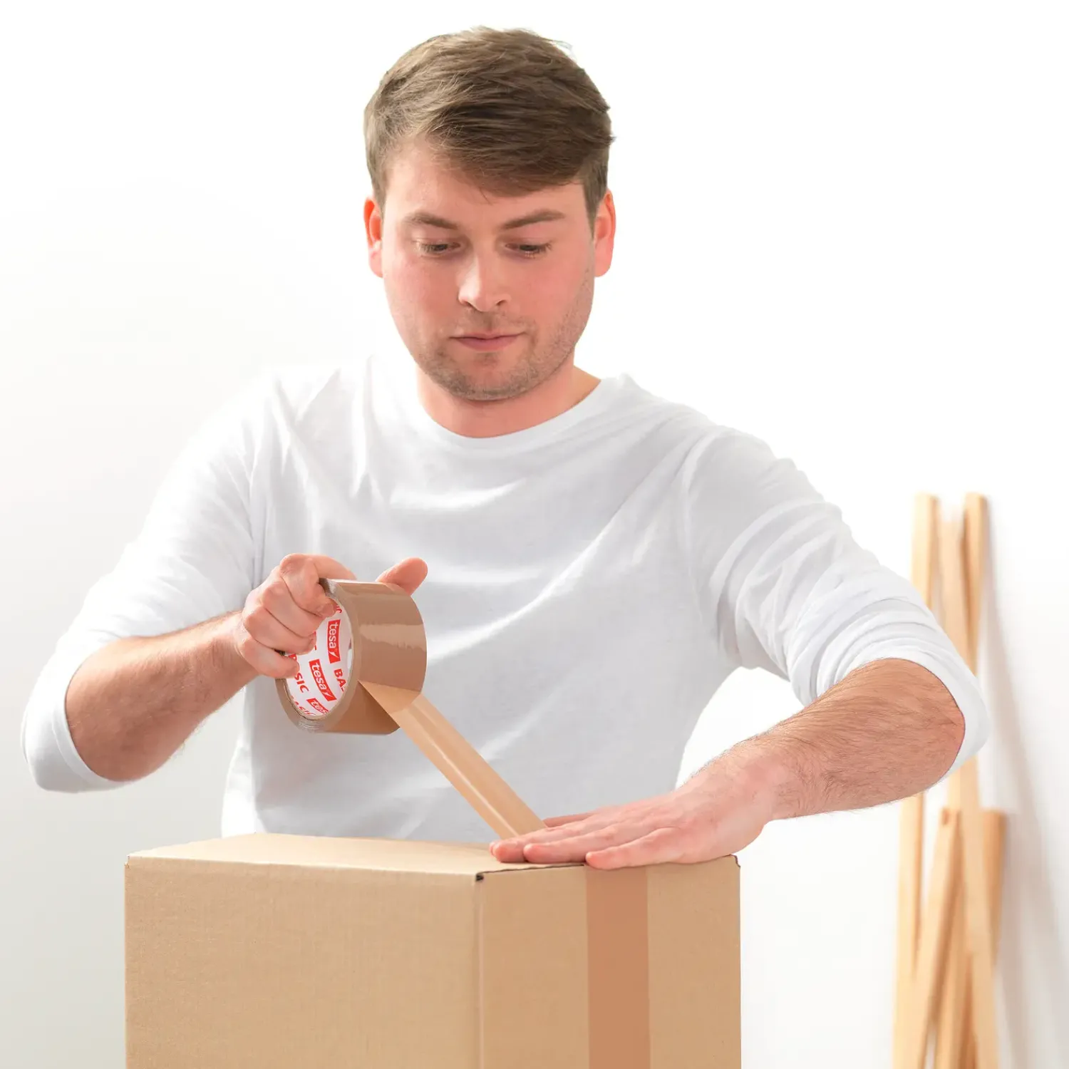 Denne Tesa® Basic pakketape er rigtig god at have derhjemme til lukning af kasser og poser, hvis du f.eks. skal sende pakker retur, du har handlet online. Den er nem at anvende og har en let og støjsvag afrulning. Tapen er ideel til lukning af flyttekasser, pakker og æsker, som du skal opbevare på loftet eller i kælderen. Emballagetapen er fri for opløsningsmiddel og er UV- og aldringsresistent.
