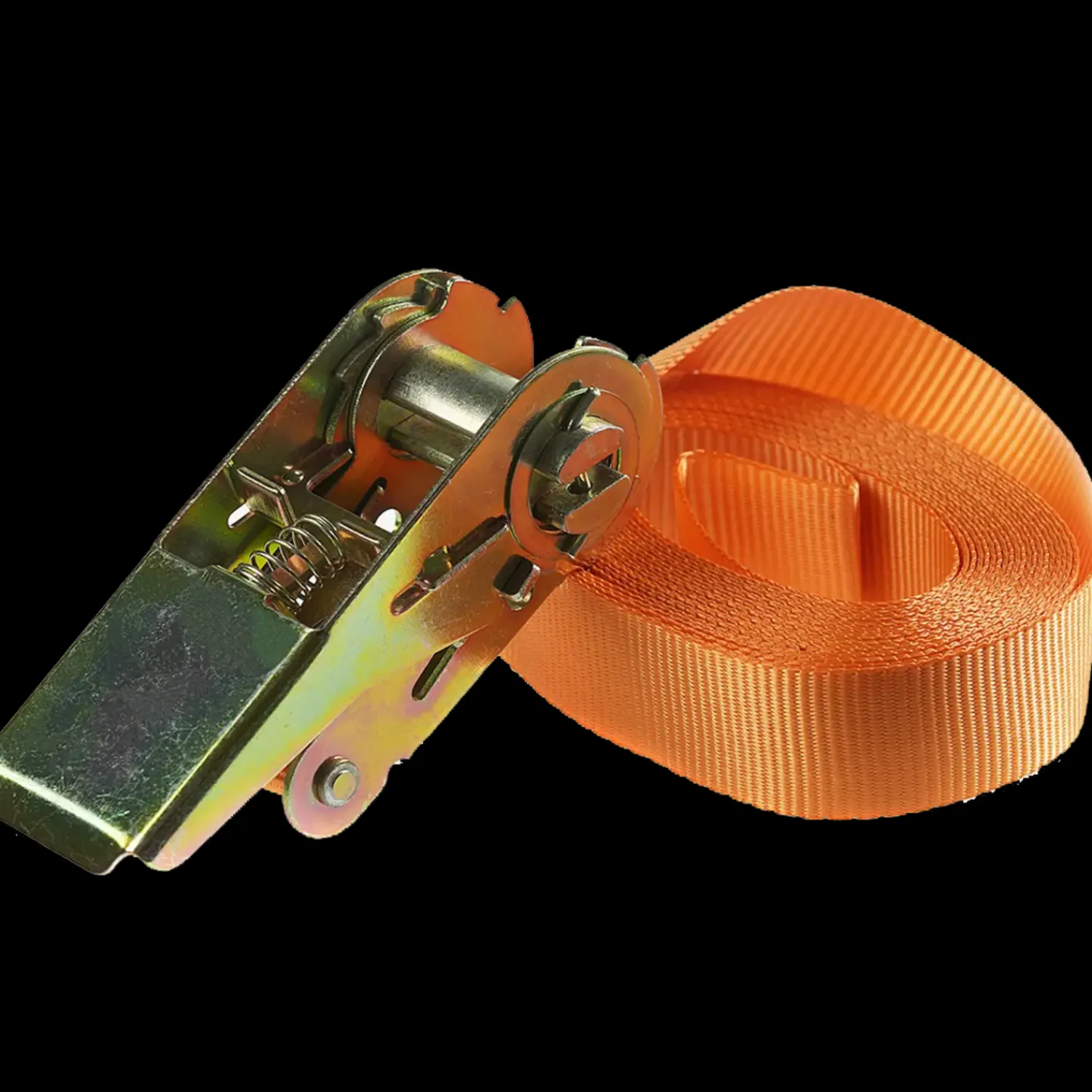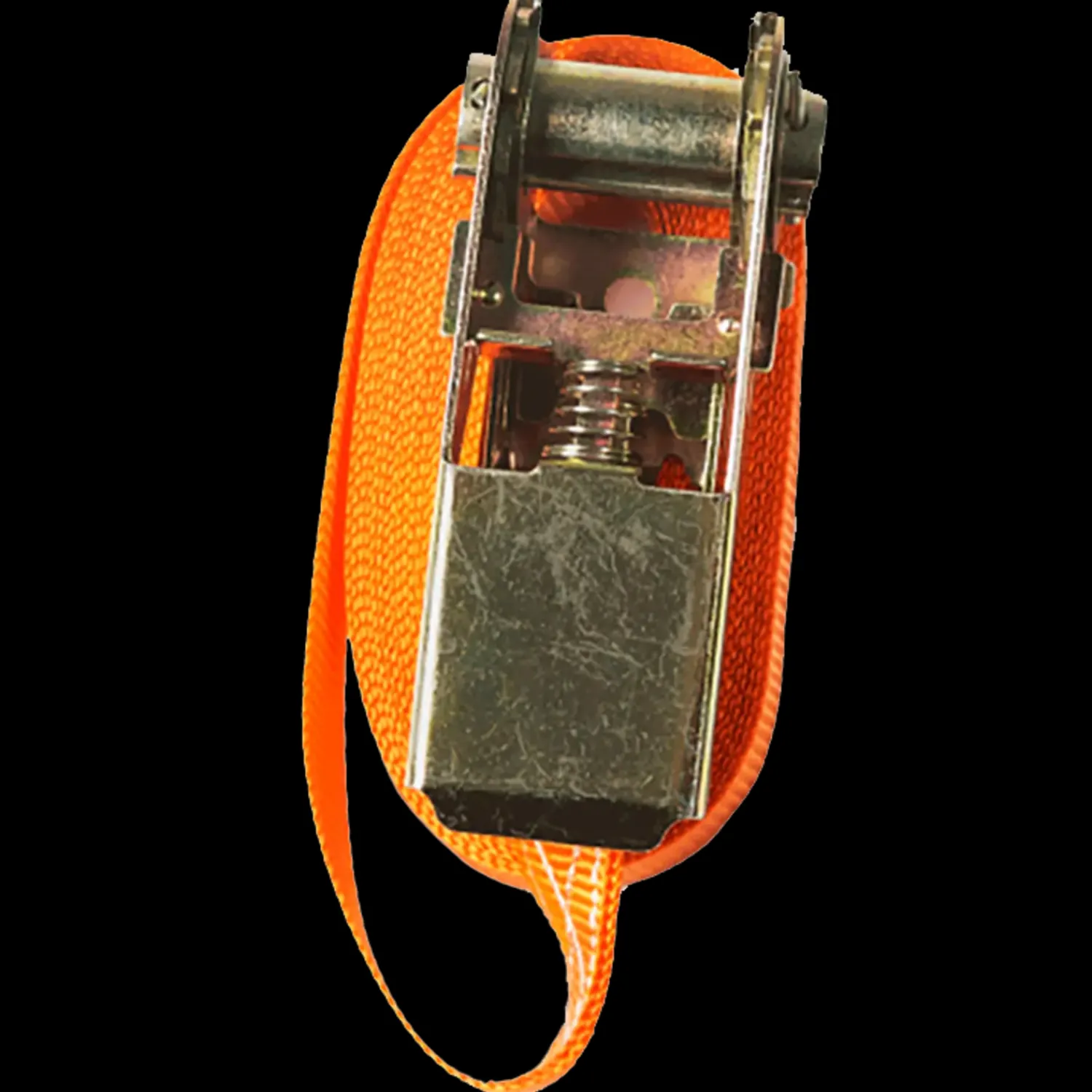 Lastestrop med orange rem og skralde i el-forzinket jern.